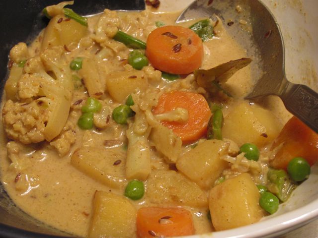 Back home, I quickly tried to make my version of Cambodian vegetable stew, which looks like this. Very tasty, and very nutritious (I imagine). The magic is mostly in the masala, and some credit to the coconut milk too.