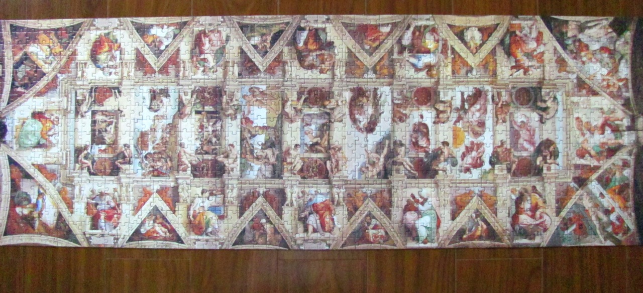 I spent the rest of the evening reading a book on all the major works of Michelangelo, from start to finish. Interesting, though he was the master of the male body, Michelangelo had very little understanding of the female form, and most of his women ended up with masculine features and physique in this painting!