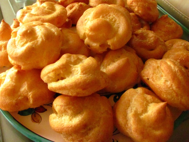 It is far more difficult to pronounce than to make – our baking club challenge for this month. The basic dough to make a host of wonderful, sinful goodies – gougeres, cream puffs, profiteroles, eclairs. Have a look, and lick your lips 😛