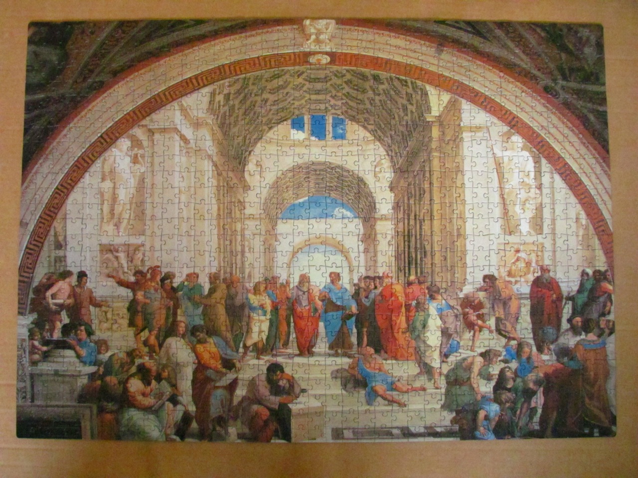 Because the painting is so popular, there are always crowds around it, and very difficult to photograph. So, once again, I got tempted by the puzzle on sale. 1000-piece puzzles are no longer a challenge for me, but quite entertaining, and this one got done in 3 days flat: