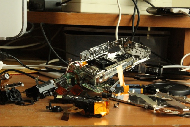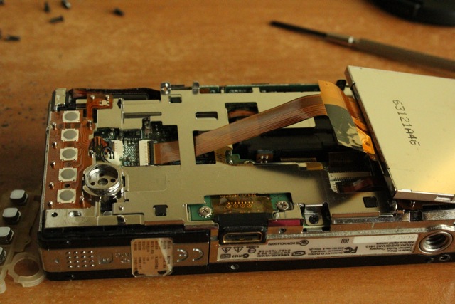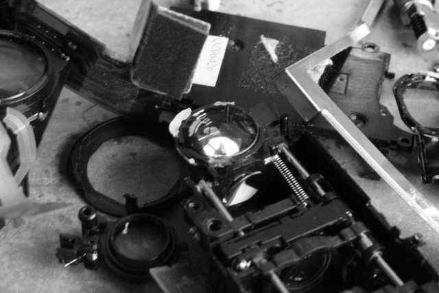 Some months back my precious camera (Kodak V610) went bust, and was declared irreparable. I remember I bought it en route to the airport on our trip to Kanyakumari, almost 4 years ago. The salesperson didn’t know the first thing about selling a camera, but I knew the features pat, and wanted only that one. With over 10,000 pictures from the Kodak, I was sad to let it go. So it stayed on my desk gathering dust for 3 months. Yesterday, at the peak of my joblessness, I felt like taking it apart, for the fun of it, so I did. And made some interesting pictures: