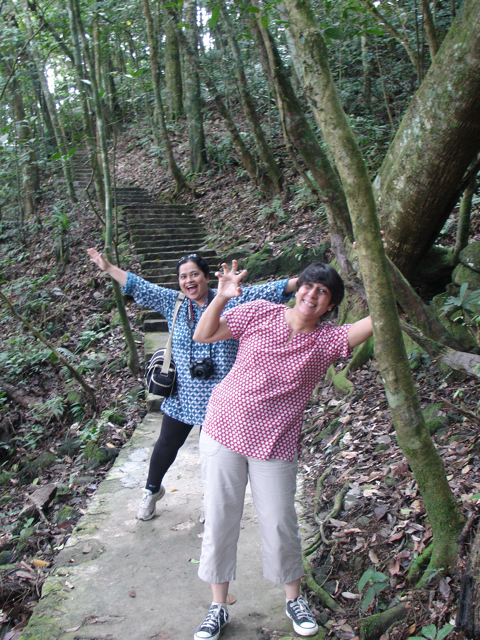 My cousin, Uju, is visiting from India, and I’ve planned a load of activities for us. But the trek on Sunday was Souvik’s inspiration. We see these hills from our window in the distance everyday – we learnt that’s the Ba Vi National Park. A 2-hour drive out of Hanoi on a hot and sunny day was quickly turned into a pleasant and refreshing drive up the hills. Turns out many locals had the same idea, and there were a number of families at Den Thuong.
