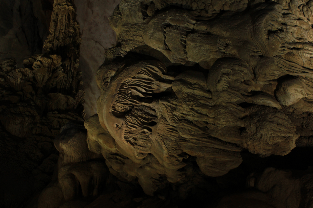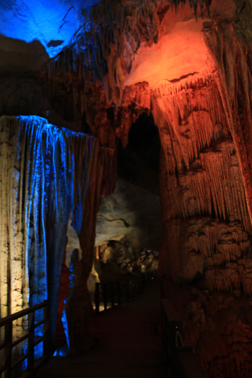 Once inside, we were awestruck at the fantastic landscape that nature had created over thousands of years. Stalactites and stalagmites in various formations, illuminated by (man-made) lights to give a feeling of wonder, not eerie in the least. We let our imagination run wild; the roof of the cave looked like the Duomo of Milan inverted, some sections were lit up like karaoke clubs, while others looked like Meenakshi temple gopurams! These are a few of my favourites: