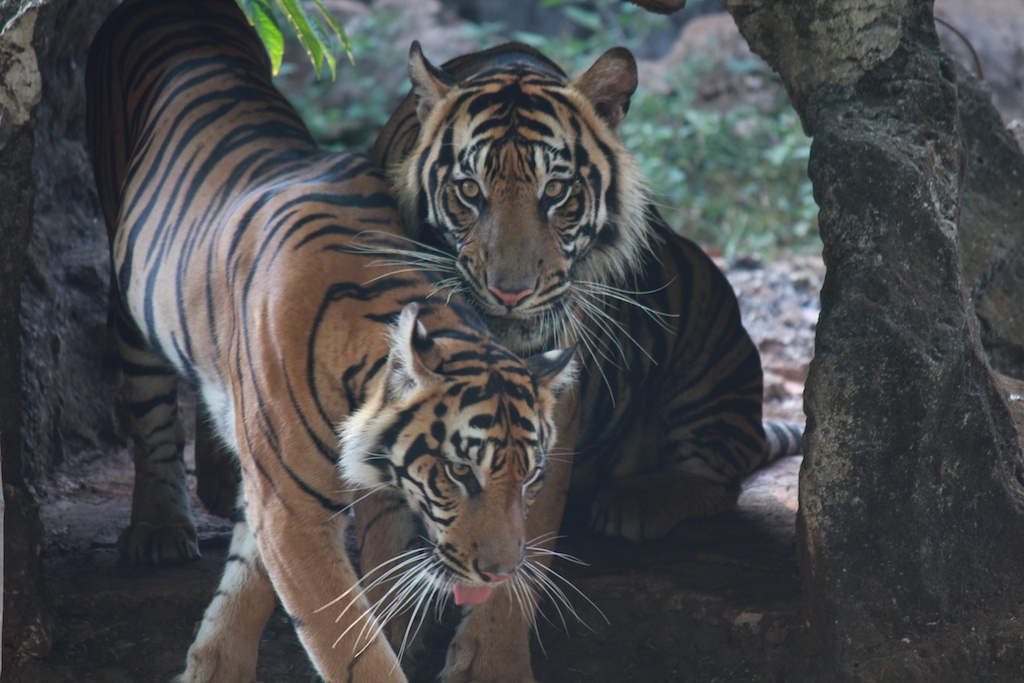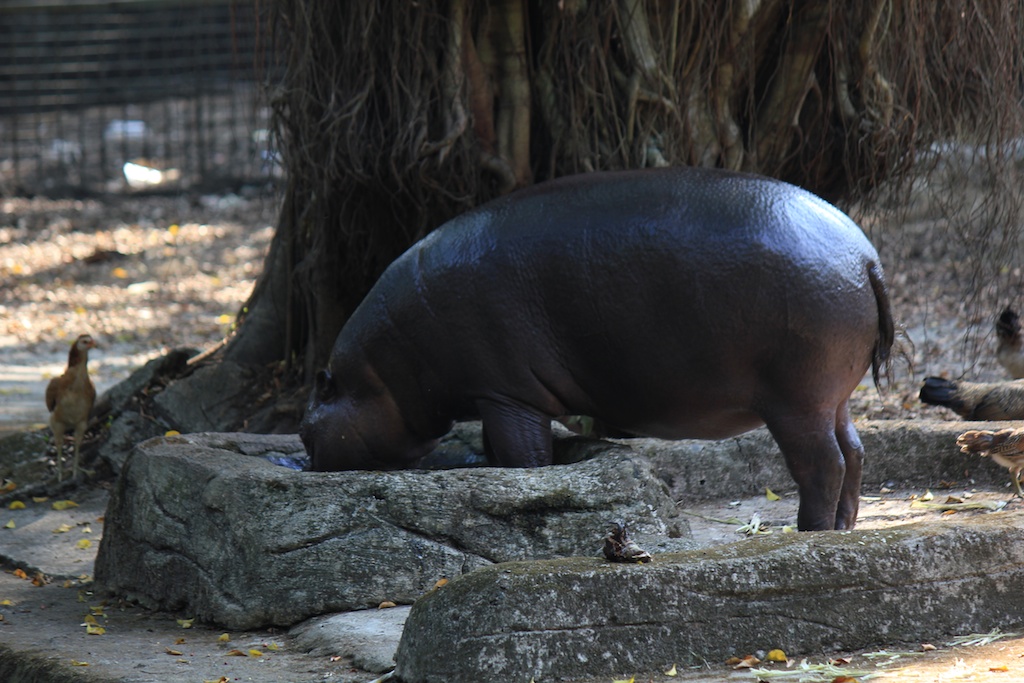 Ragunan zoo was fun. We’re like children, excited to see animals. Souvik was supposed to run 10km, but he was stopped in his tracks by a tiger making eye contact. The baby hippo thought I was his new girlfriend, coz he sidled up to me repeatedly, ignoring all others. Maybe he was hungry; I was treated to multiple views of his impressive jawline and all the teeth within. I thought the monkeys were entertaining, swinging about like gymnasts, and making a racket for our benefit. They thought I was their feeder, seemingly dressed in the zoo staff colors of magenta and black. One of the monkeys gave me very explicit instructions, by flinging a few banana peels at me alone, hoping I would get the hint. Yeah, hilarious.