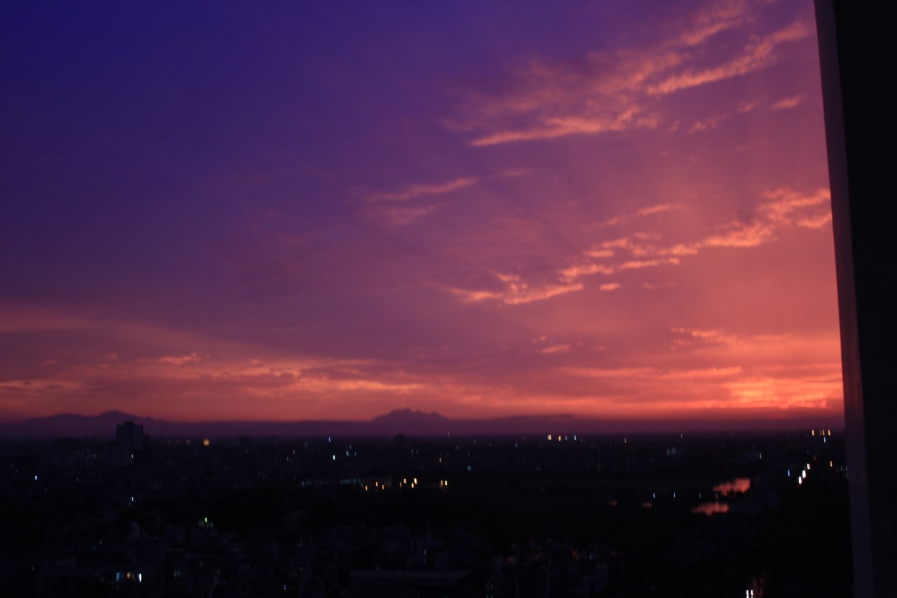 Sunset view from our apartment in Ciputra, Hanoi. A riot of colors just before a massive storm heralded by a giant dark cloud coming over from the east.