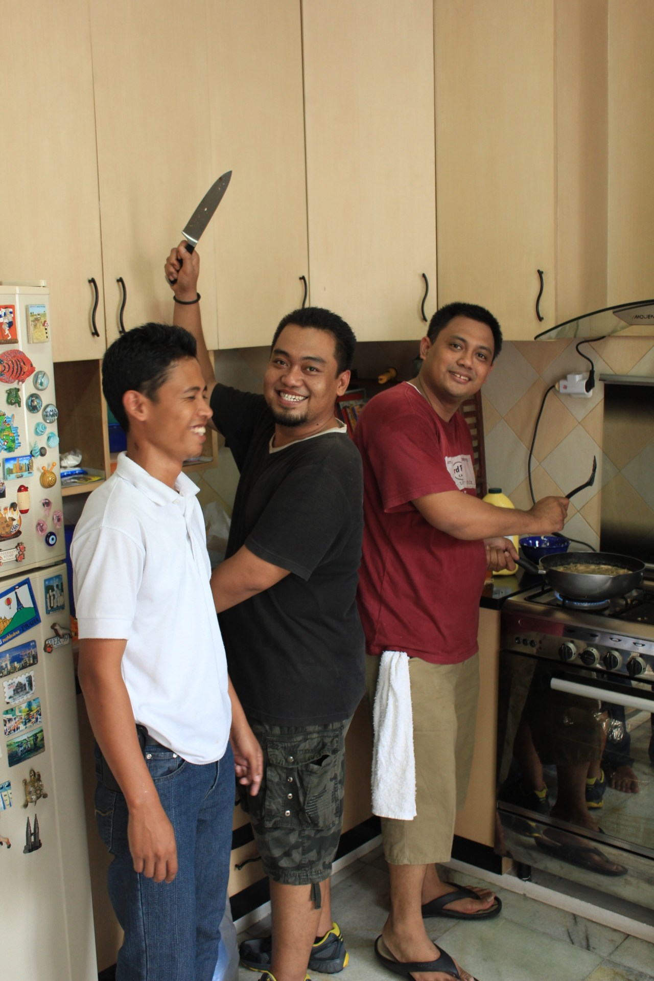 I did cook a couple of things, of course – shepherd’s pie and brownies – but the star of the event was the steak with its accompaniments. Pak Wendy and his able sous chef and assistants did pretty well to get the coals burning, and churning out exotic squid salad, steaks and fruit soup. All I had to do to help was record their efforts. The food flew out too far too quickly for me to shoot, though, and there was a perpetual queue in the kitchen of the hungriest and eager-est souls ;-).