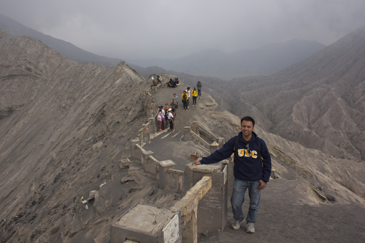 At the foothill of the mountain, another surprise awaits you. Horses, with offers to rest your tired feet and ride part of the way up to the Bromo crater. I resisted that offer for the longest time, but finally caved in because it was getting late and we did want to get up there and back before it got dark. The adventures on the horse is another story; I’m just thankful both me and the horse got up there without incident, while Souvik walked. The last mile was 200 steps, all covered in ash. So you have to hold on to the cement railing for dear life and haul yourself up. I set the record for the slowest ascent; luckily most people were heading down, so I didn’t hold up anyone else.