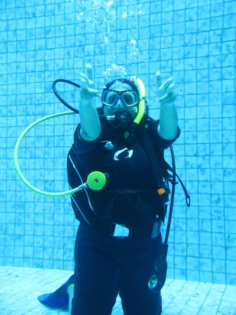Well at least I haven’t found any reason to be grumpy about these diving classes. Loving all the SCUBA equipment, learning complex manoeuvres of ‘hovering’ or achieving neutral buoyancy, and all those ‘what-if’ exercises of losing the mask, running out of air, and what-not.