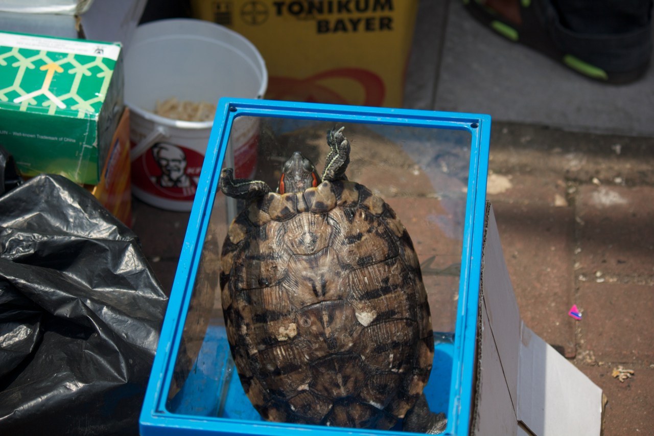 Turtle in a box, trying its hardest to escape