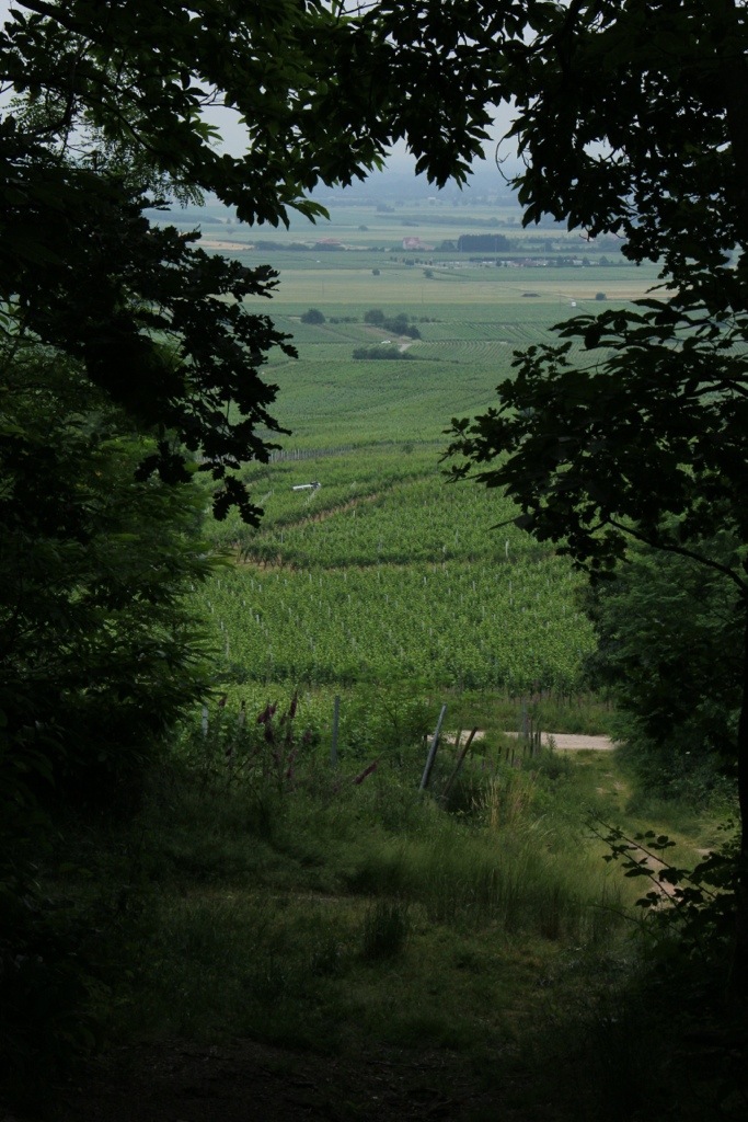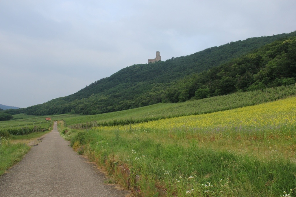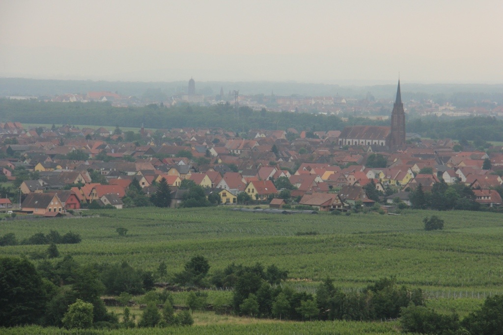 We choose to hike up the hill to the Chateau L’Ortenberg we have been looking at almost everyday. The view is spellbinding. The Vosges Mountains on one side, the pretty town of Scherwiller on the other, vineyards all over. A nip in the air with the promise of a storm, and the sun obscured by heavy clouds. Uphill hikes are always ‘uphill’ for me, but Souvik doesn’t even pause for breath. So he gets to lug my camera. Which I keep pulling out of the bag, wanting to take pictures of everything. Naturally, we take a few wrong decisions, plodding on until we realise that walking downhill won’t get us to the castle up there. Then we spot the right path that somebody has marked with fluorescent chalk, string, some marking on trees. Huh! It’s steep, I keep my head down and pause at every hundred steps to catch my breath that got left behind. It’s a good thing, because there are lovely views at every pause. Then we catch a glimpse of the castle wall and I give it my all to get there quickly… Only to find that it’s locked up, and there’s no way in. We are disappointed, but rationalise that we had our oxygen spa and need to get back in time to finish packing. A quick peek into the chapel where I parked the bike, and we are off to Scherwiller, 800m away.