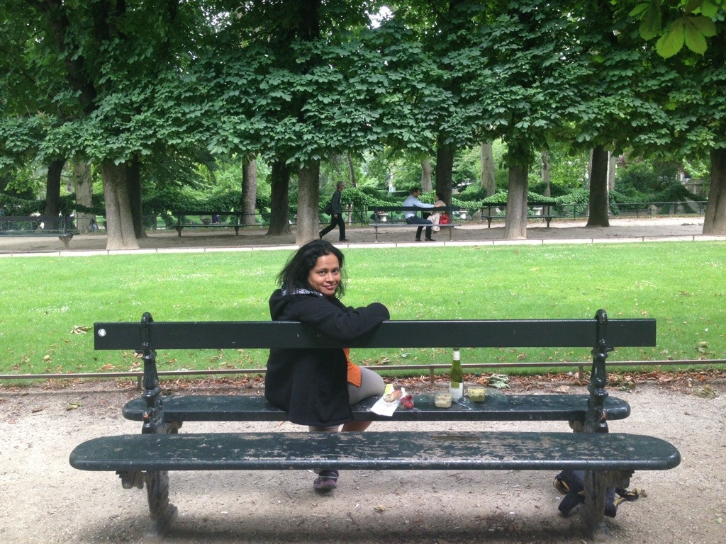 Heading off to the Luxembourg Gardens, we found a cool bench and enjoyed our merry meal of hummus, basil tapenade, red peppers stuffed with feta, baguette and wine. Magnifique! And the 20 minute snooze after that was a must-do!!