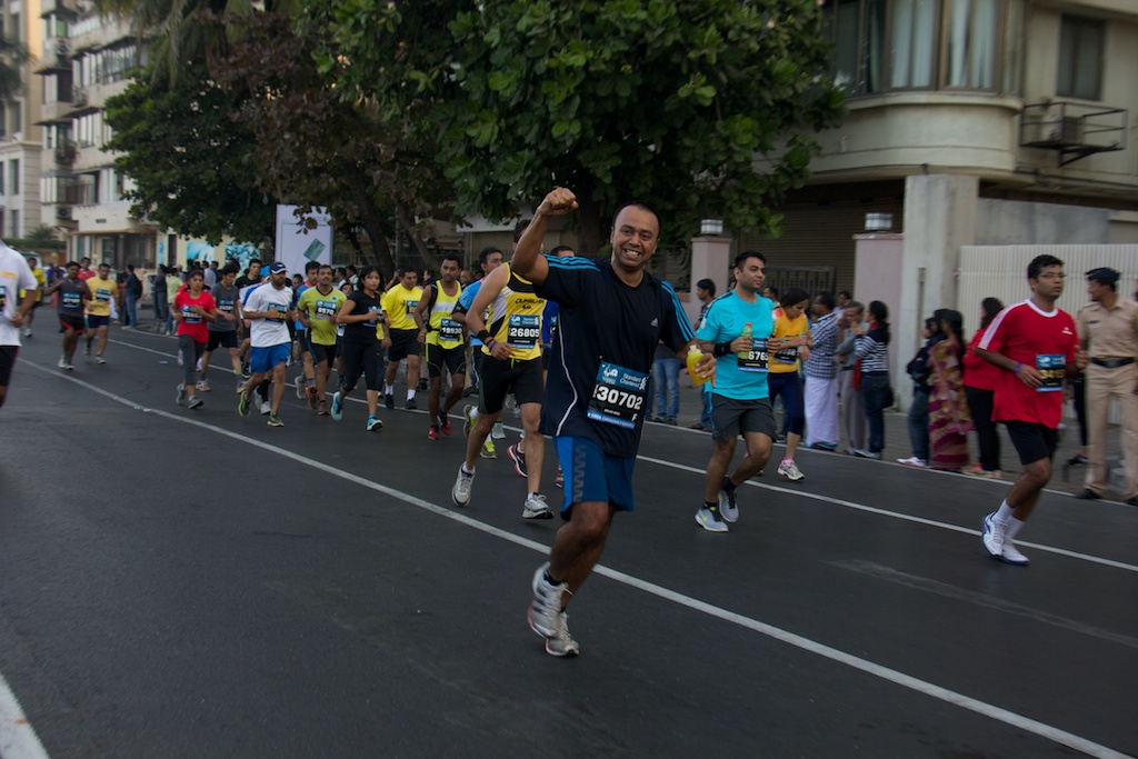 As the sea link route was closed for traffic, we cabbed it through the inner lanes all the way to Churchgate, and found a vantage spot to be able to see both sides of the road. There was a thrill to watch the elite marathoners blaze past.