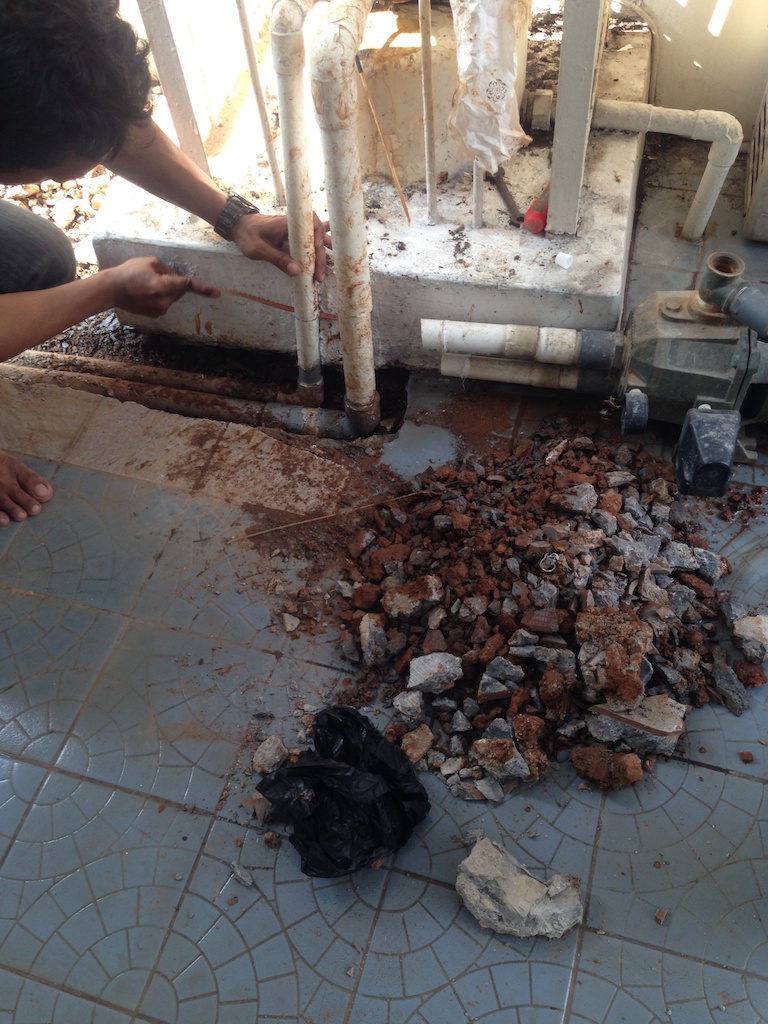 While these people have to battle health, loss of home and other critical issues, at home we had a borewell pump breakdown, and suddenly it seems the world is coming to an end with no running water in taps. We had the handymen spend an entire day installing a temporary replacement until the broken one got fixed. That involved a lot of breaking into the floor, cutting up the pipes, and plenty of clearing up to do. The good news (for us) is that this is Jakarta, and we are spoiled by an army of helpers, so we don’t need to do more than lift a finger to phone for help. The guys know what they’re doing, and the best help we can give is to stay out of their way, not disturbing them with our many questions that they have to rack their brains to answer in English. That bit is the torture, I believe.