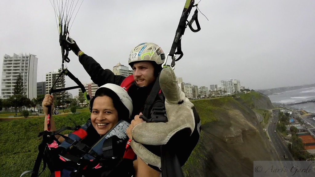 After the tour, it was too early for me to head back, so I thought I might walk aimlessly around Miraflores. That’s when I looked up and saw a miracle – a hint of sunshine! And there were paragliders. I thought, why not? Another item on my wish list might come true. I wasted no time rushing over to the paraport or whatever they call it, paid the money, and was quickly strapped into the harness. My pilot, Alex, was ultra-friendly and uber cool (part time baker), and made the flight super exciting. I squealed at every turn, getting plenty of thrills gliding higher than the J.W. Marriott hotel, and close to the Larcomar strip, waving at pedestrians, getting a bird’s eye view of the city and the cliffs and the waves, and too soon the flight came to an end. All done in a space of 30 minutes.